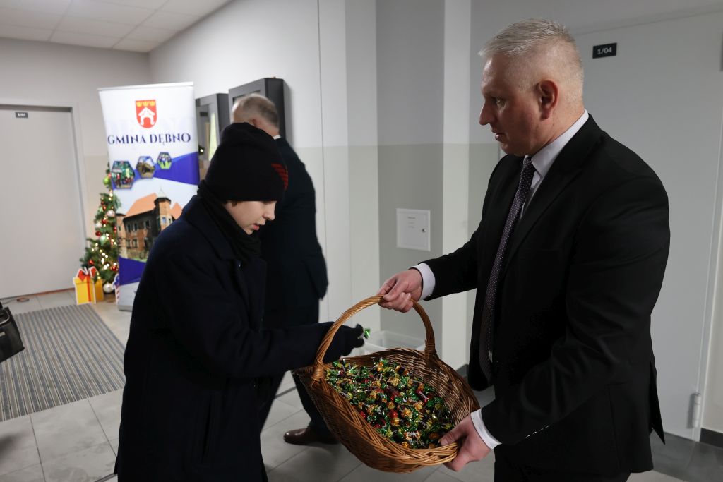Podczas wydarzenia Wójt Gminy Dębno Wiesław Kozłowski oraz jego Zastępca Jacek Szklarz wręczali wszystkim dziadkom i ich wnukom słodki upominek. Dziękujemy za Waszą obecność!